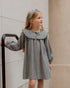 Our Mini Dress features a charming oversized collar with merrowed scalloped edges, balloon sleeves, and a front button placket for a sweet finish.