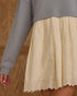 Stay warm in style with our Sweatshirt Dress, featuring a soft sweatshirt top and a pleated skirt with a sweet scalloped hem.