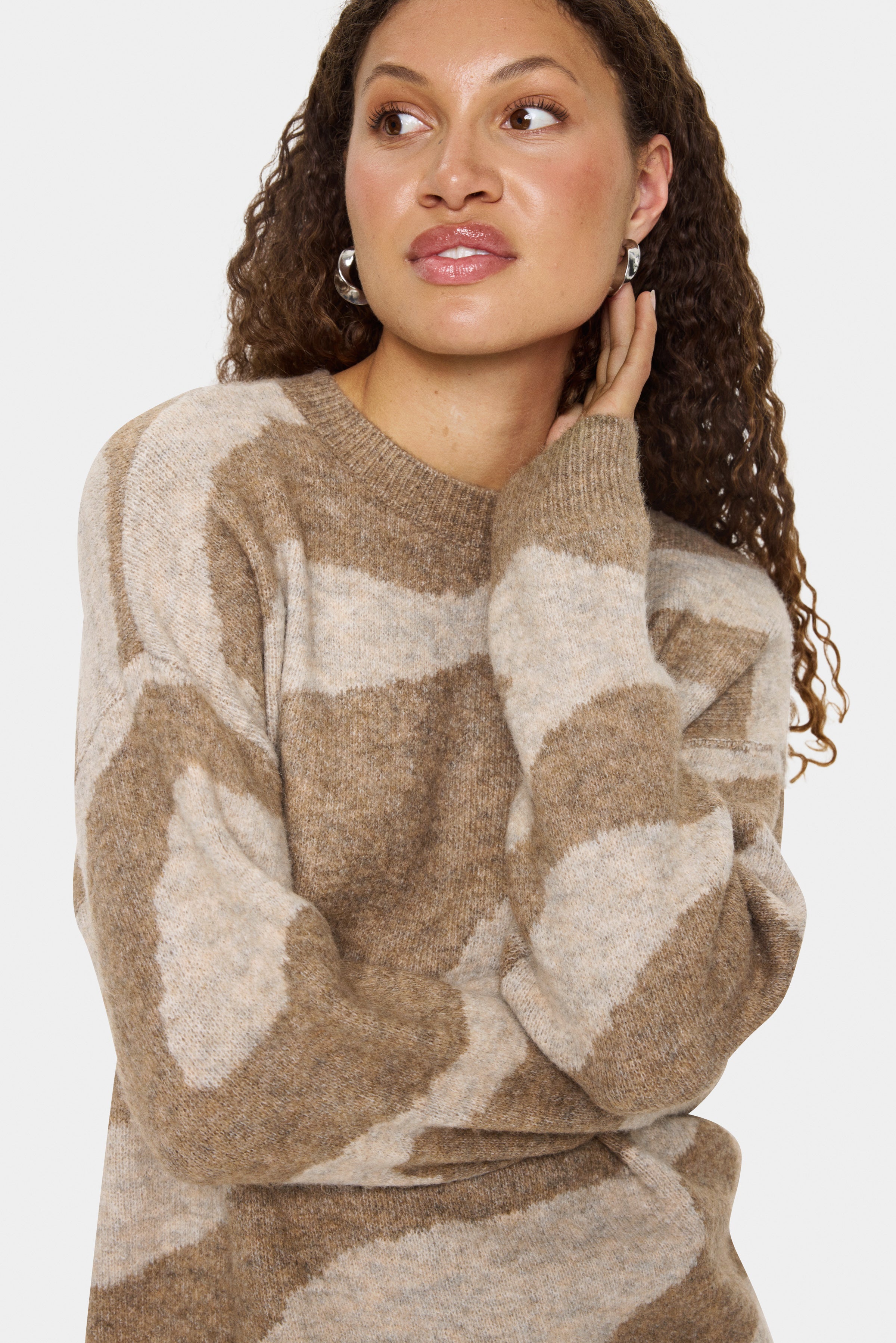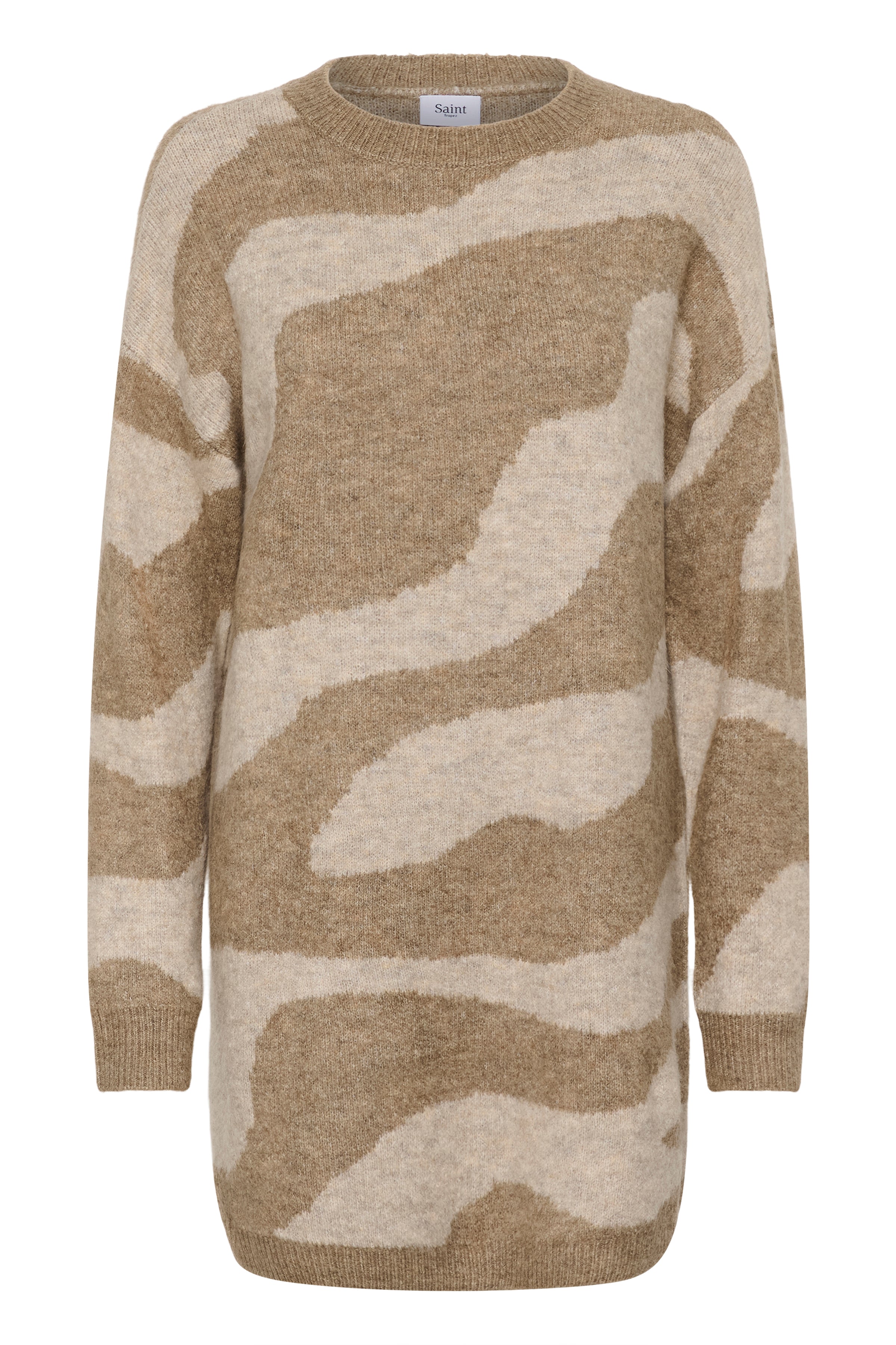 SAINT TROPEZ MALLIE PRINTED SWEATER DRESS - TIGERS EYE