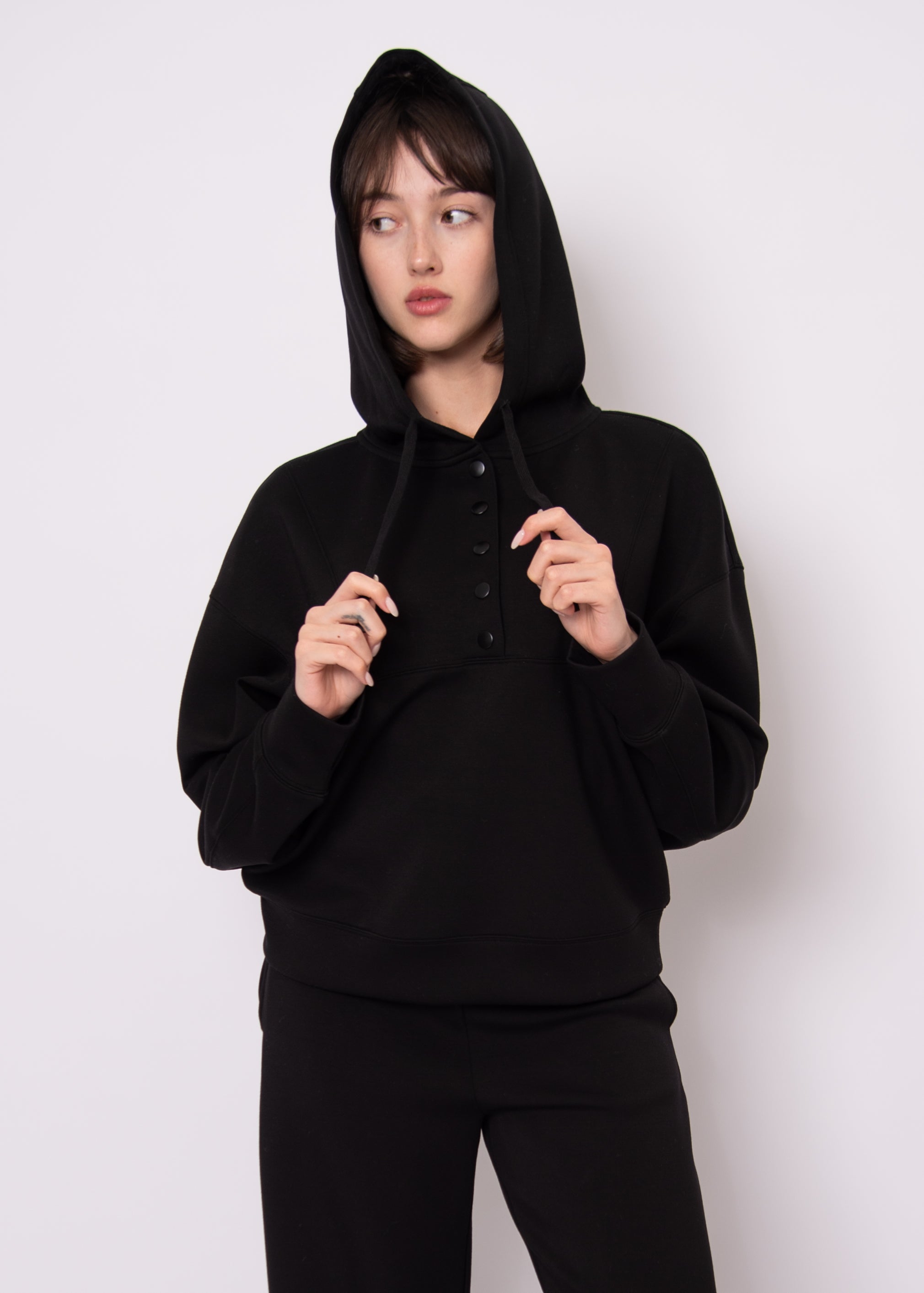 SALLIE SOFT KNIT SNAP FRONT HOODIE - BLACK