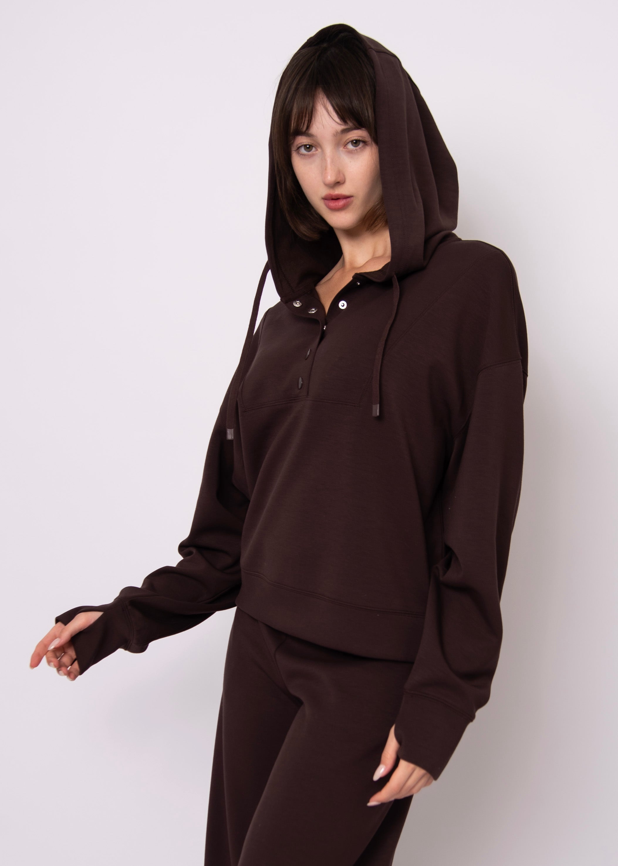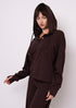 SALLIE SOFT KNIT SNAP FRONT HOODIE - BROWN