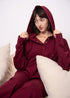 SALLIE SOFT KNIT SNAP FRONT HOODIE - OXBLOOD