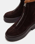 Experience style and comfort with the JONES ankle boot. The sleek design and front zipper detail add a touch of modernity to any outfit. Made with durable suede, these ankle booties are perfect for everyday wear.
