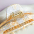 Rounded hair clip with a cutout in the center in shades of beige, cream and pearl. Ideal for all hair types.