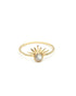 A mystical energy flares from the stone core of this celestial star. The golden cornerstone for your ring collection. Solar is a twisted 14 karats gold plated band featuring a crescent sun and a labradorite stone. You can wear this beauty by itself... Or stack it with its neighbors for more fun! With this Gold Vermeil ring on your finger, you'll shine like never before!