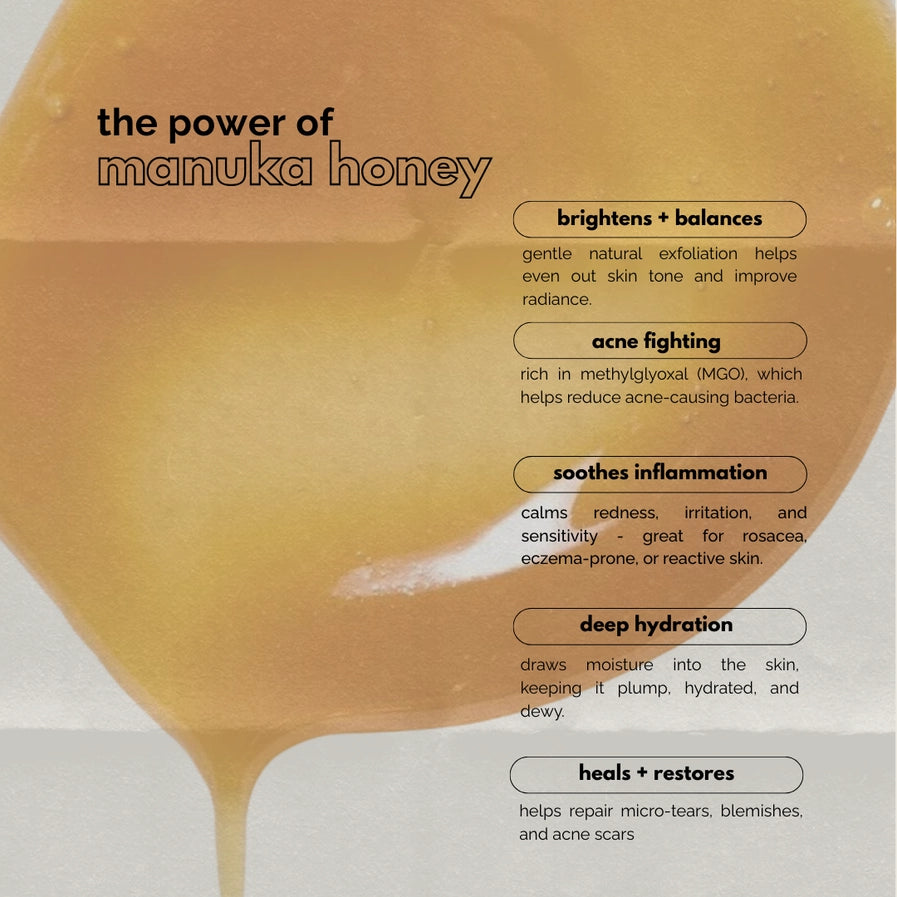 Manuka Honey → Hydrating, antibacterial, calms redness & irritation