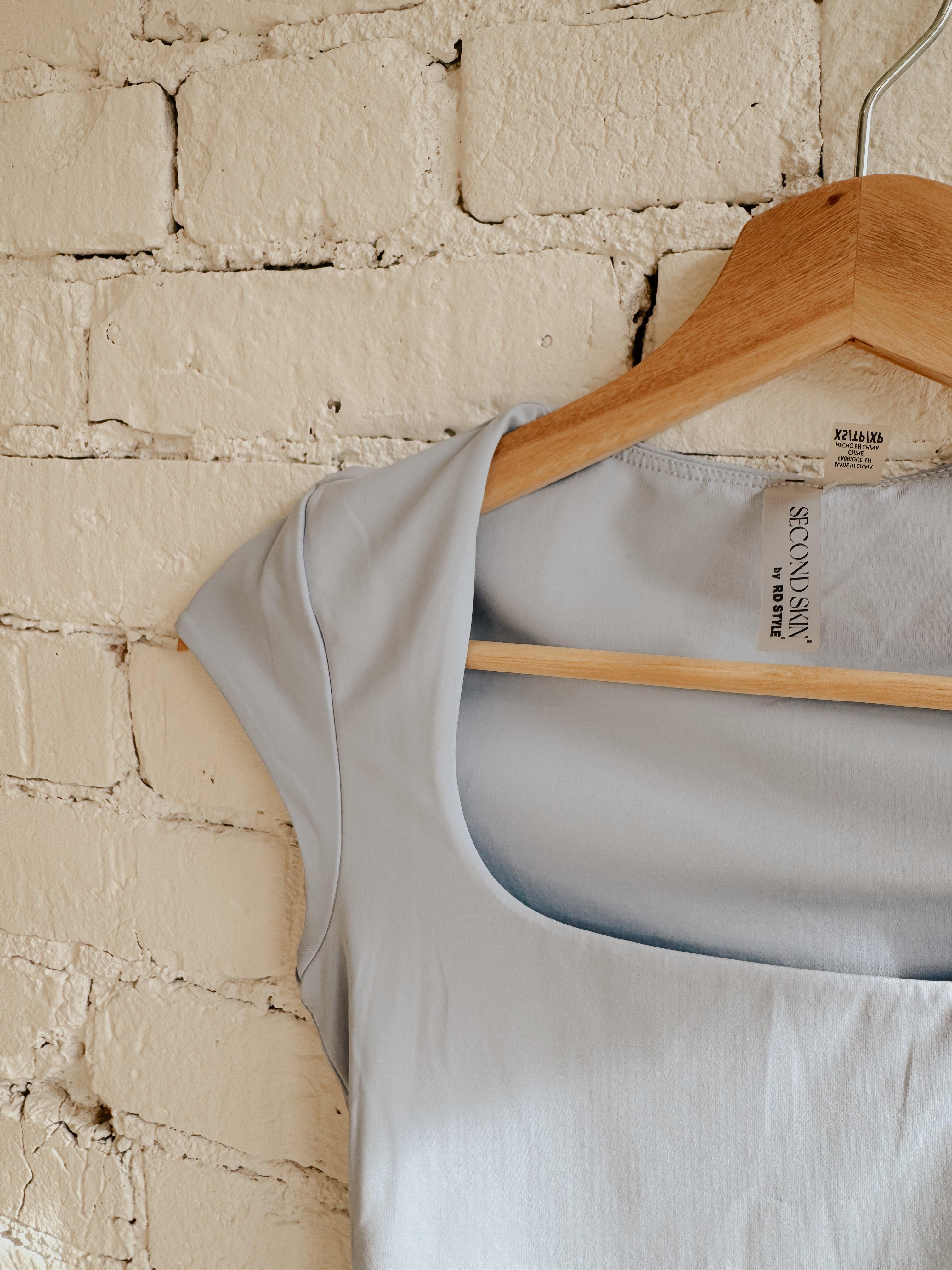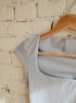 Lined tee with cap sleeve and squared neckline.