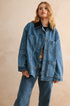 The dark denim construction offers durability and timeless appeal for any wardrobe.