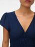 This midi v neck dress features short sleeved, some smocked details across the bodice and a flowy shape for a flattering fit on all body types.